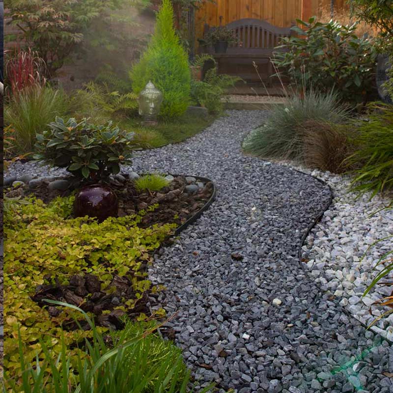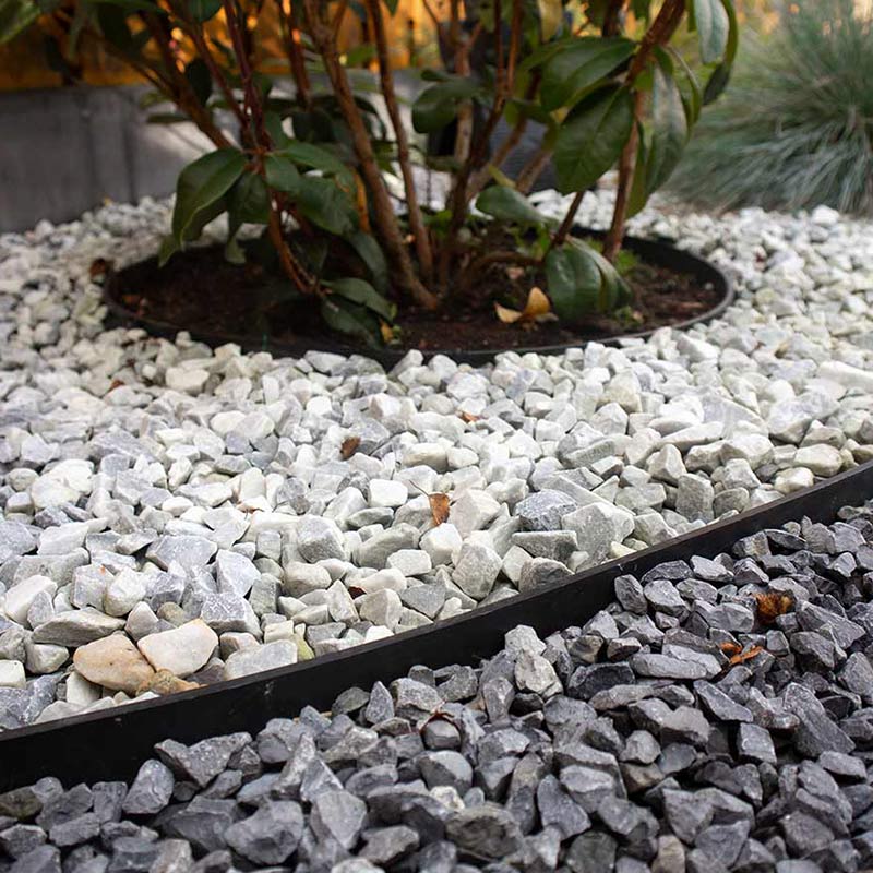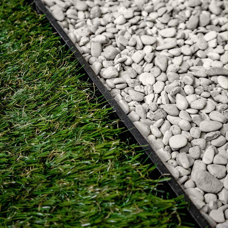 De Multi-Edge FLEX onderscheidt zich van andere soorten kantopsluiting door de unieke constructie. Hierdoor is het mogelijk om strakke, rechte randen én ronde glooiende vormen te maken. Zelfs het aanleggen van cirkels is zeer eenvoudig. Afhankelijk van de toepassing en laagdikte van de bodembedekking (zoals bijvoorbeeld grind) kunt u kiezen uit twee hoogtematen: 55mm (5,5cm) of 70mm (7cm).